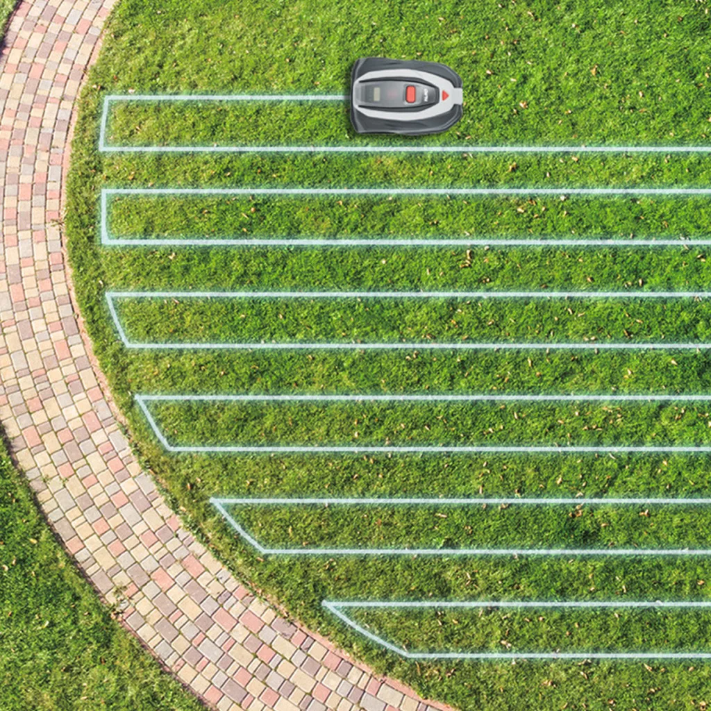 Innovatív robotfűnyírónk egy 2 megapixeles, nagylátószögű kamerát használ a környezetének rögzítésére, és ennek megfelelően állítja be a nyírási viselkedését. A kamera automatikusan érzékeli a gyephatárokat – mind a mozdíthatatlan, mind a mozgó tárgyakat érzékeli és elkerüli. A készülék párhuzamos sávokban képes nyírni a füvet, így a gyep tökéletesnek fog tűnni (a sávos nyírás maximum 20 m hosszú sávokhoz és viszonylag sík felületekhez ajánlott – egyéb esetekben véletlenszerű módra is lehet váltani).