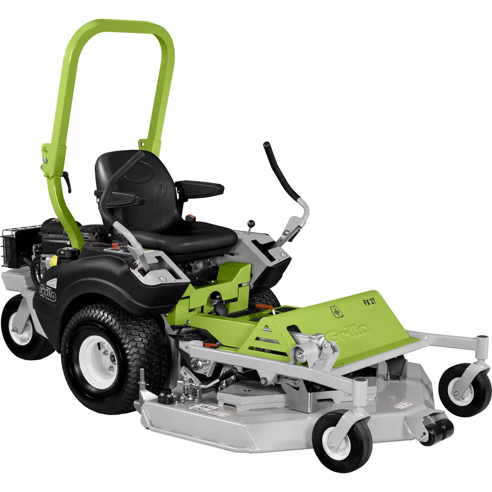 A GRILLO FX 27 egy frontkaszás fűnyíró, a ZERO TURN minden előnyével: nagyobb manőverezhetőség és rövidebb munkaidő. Az elülső vágóasztal megkönnyíti az akadályok jobb láthatóságát a bokrokkal, sövényekkel, kis fákkal teli kertekben. A hátsó kidobásról a mulcsozásra való váltás központosított, egy kar segítségével gyorsan elvégezhető. A 132 cm-es vágóasztalt elektromágnesen aktiválja. Tengelykapcsolóval és három késsel van felszerelve. Az FX 27 nagy területek kiváló minőségű vágásra alkalmas, akár nagy sebesség mellett.